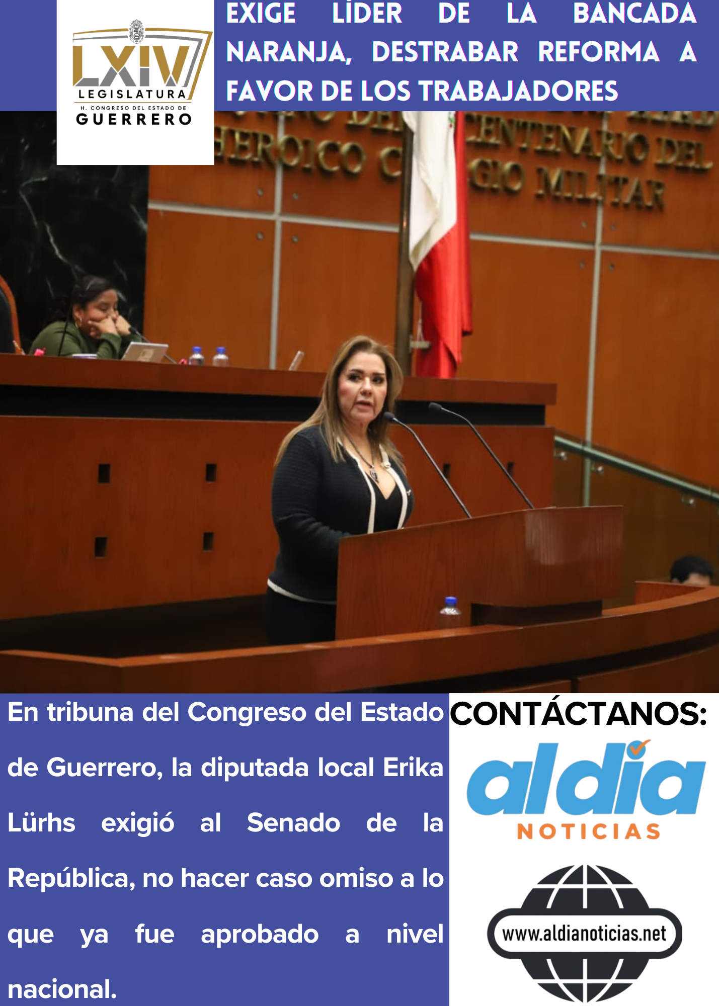 “El tema ya no admite retrasos: la reforma está aprobada, solo falta que el Senado de la República la publique. No hay pretextos”. Sentenció Erika Luhrs.