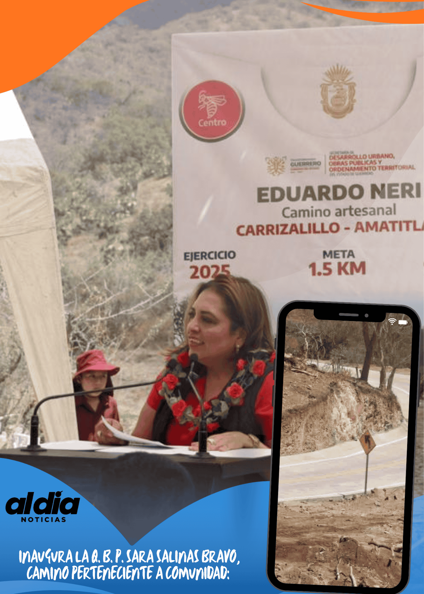 Amatitlán, municipio de Eduardo Neri, Guerrero, 22 de marzo del 2026.— Con un costo cercano a los 10 millones de pesos, fue inaugurado el camino artesanal Carrizalillo–Amatitlán, una obra de 1.5 kilómetros que beneficiará a más de mil 500 habitantes de comunidades rurales.