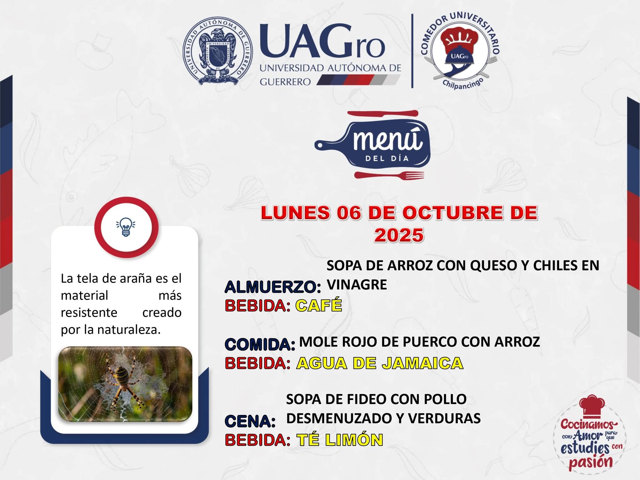 Amigos universitarios, el Comedor Universitario Chilpancingo te invita a que los visites y degustes lo que han cocinado para hoy.