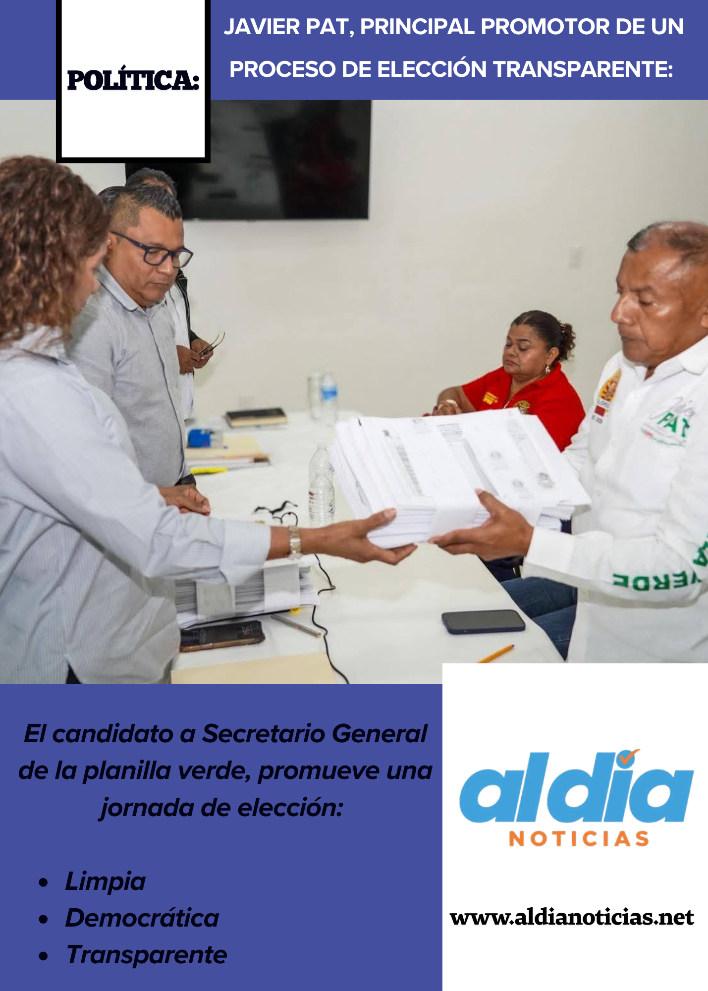 Chilpancingo, Gro., noviembre de 2025.— En un clima de orden sindical y exigencia de claridad, Javier del Carmen Velázquez Pat, candidato de la Planilla Verde a la Secretaría General del Sindicato Único de Servidores Públicos del Estado de Guerrero, refrendó su apuesta por una elección “limpia, democrática y transparente” al participar en la Primera Junta Previa entre aspirantes, donde se entregó oficialmente el padrón electoral.